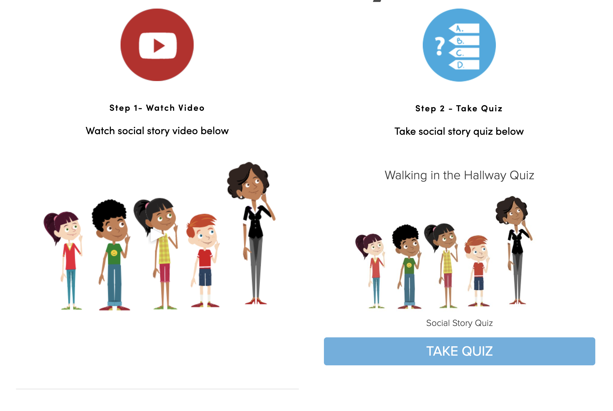 There is a lack of online resources for students with autism. Autism teachers teach students to deal with emotions and behaviors through social narratives. However, these narratives are traditionally printed and many students with autism are unable to read and therefore cannot engage with the social narratives independently.